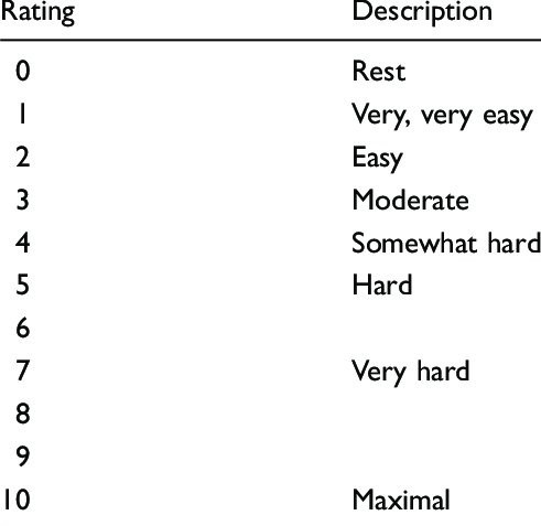 This refers to how hard your resistance training should be and while there are many different measures we could use (similar to “cardio” training) my favorite is the 10-point RPE scale (shown below). A great RPE range for resistance training would be 5-8 which roughly means that every time you do a resistance training exercise you would stop when you felt it was “Hard” or “Very Hard”; or you had about 2-5 repetitions left before you wouldn’t be able to complete another repetition. I personally don’t think that going much deeper into intensity than that, for general health purposes is needed. If someone becomes more interested in becoming stronger at a particular exercise than a deeper conversation could be had.